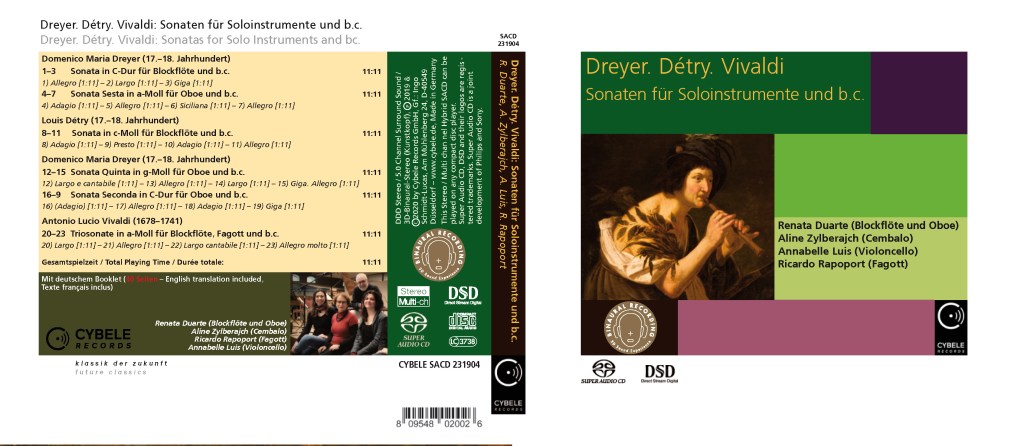 Nous avons enregistré trois sonates pour hautbois et une pour flûte à bec. Domenico Maria Dreyer a surement été influencé par la musique d’Antonio Vivaldi et pour cette raison un trio de Vivaldi pour flûte à bec et basson figure aussi dans le disque. Un troisième compositeur y est aussi présent. Il s’agit de Louis Detry qui nous a laissé une sonate très variée et virtuose pour flûte à bec et basse continue.